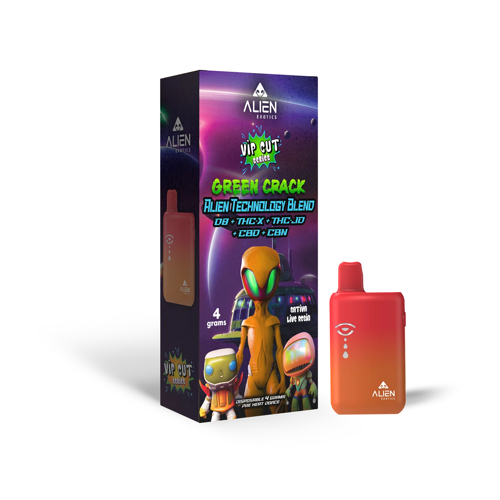 In a vape aisle full of meh, Alien Exotics VIP Cuts shine because they don’t cut corners—literally, it’s in the name. At $30-45 a pop, you’re getting VIP value for that 4-gram haul, way more bang than your 1-2 gram normies. The preheat tech and live resin set them apart from cheapies that clog or fade fast, and the eco-ish packaging (recyclable bits) shows they care beyond the high. Retailers love stocking them for the eye-candy design and repeat buys.