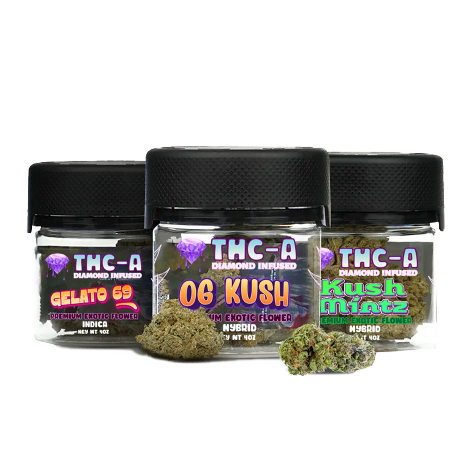 Let’s break down what makes these jars so “exotic.” The base is high-quality THCA flower—non-psychoactive in its raw form, but when you heat it up (in a joint, bowl, or vape), it flips into THC for that euphoric ride. Alien Exotics amps it up by coating the buds with THCA diamonds, which are basically 99%+ pure crystals extracted solventlessly. These aren’t just for show; they dissolve into the smoke, boosting potency to levels like 38% THCA in some batches, while keeping things smooth and terpene-forward. No harsh hits here—the diamonds make the burn cleaner, letting the natural flavors shine through. It’s all hemp-derived, so Delta-9 THC hovers under 0.3%, keeping it Farm Bill compliant and accessible for 21+ folks in most states. Think of it as premium flower on steroids: more bang for your buck, without the burnout.